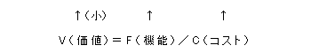 製品の価値(Value)とコスト(Cost)と機能(Function)との関係は、次の基本公式によって成り立っています。
